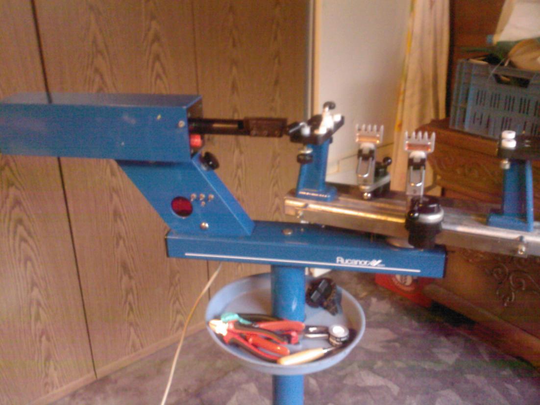 das Bild ist von mir und das ist meine Maschine, Stringway hat einfach einige Sachen übernommen von Rucanor, als die Firma nicht mehr wollte. Alle Sachen von Stringway passen darauf, nur wenn du den Besaitungsteller von Stringway nimmst, musst du das Bohrloch nach hinten versetzen damit der Teller sich drehen kann, der Umbau steht bei mir unmittelbar bevor, Bilder setze ich ins Forum. (Ja du darfst das Foto benutzen)