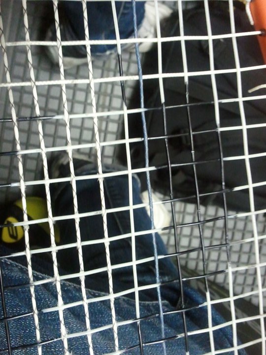 Ein Leihschläger der mit 14 Knoten bespannt war. 3 verschiedene Saiten alleine bei den Längssaiten. 2 verschieden Saiten bei den Quersaiten