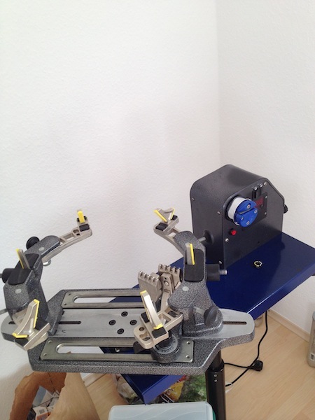 Es ist eine ca. 14 Jahre alte Target. Ich besaite nur gelegentlich. Eine Zange ist etwas ausgeleiert. Die Beschriftung (Plättchen) einer Zange ist lose. Die Maschine zieht konstant 1kp zu wenig (laut meinem Chinesen).Ansonsten ist die Maschine in einem guten Zustand.