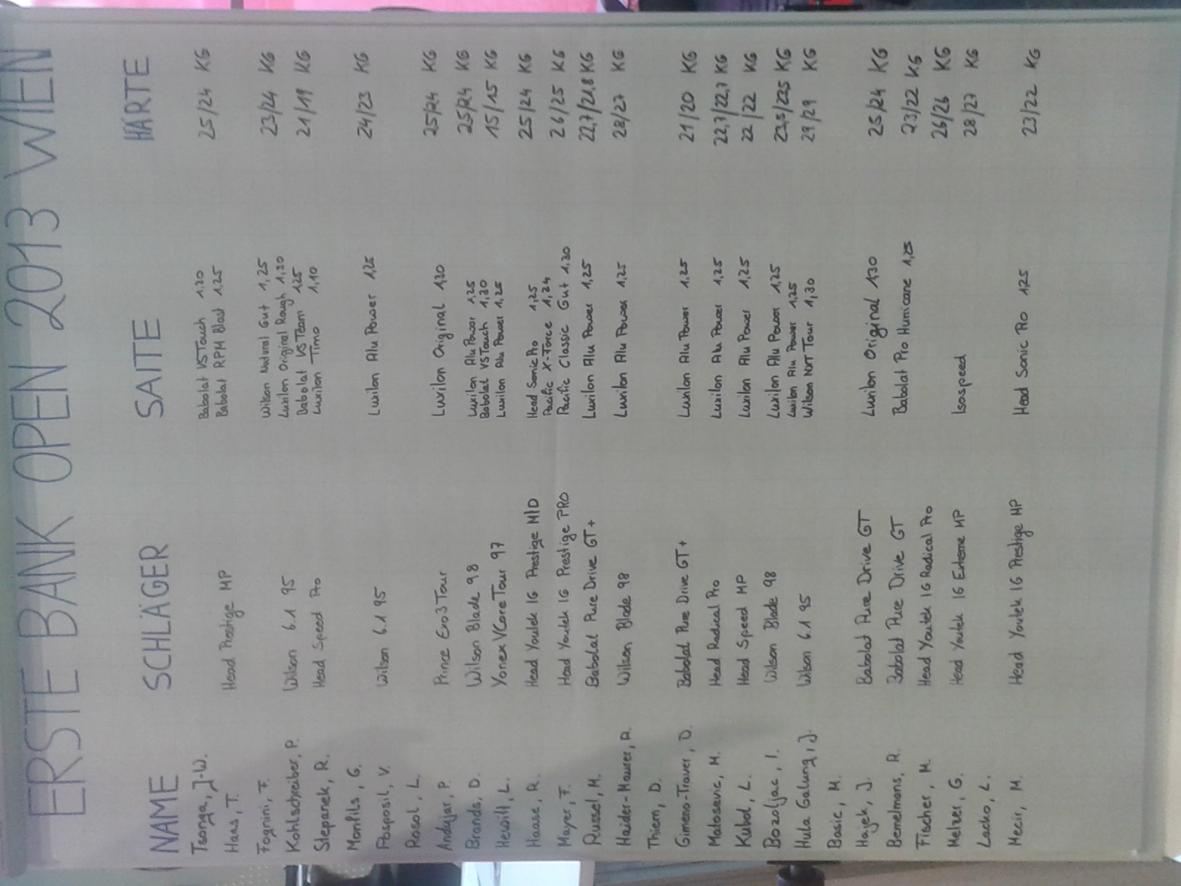Hier ein Foto mit den Besaitungen der einzelnen ATP Spieler beim