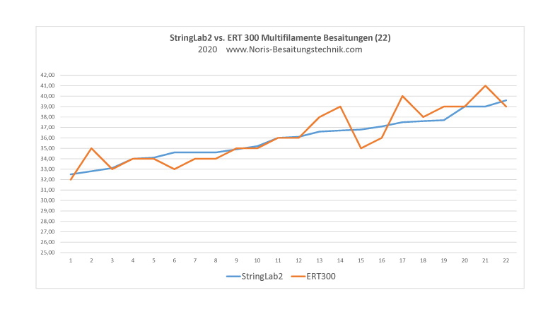 Gefühlsmäßig sind die Werte des Stringlab 2 immer wiederholgenauer als das ERT, wir werden demnächst mal Testreihen mache wo wir mehrmals mit beiden Geräten messen und sehen wie die Meßwerte streuen.
