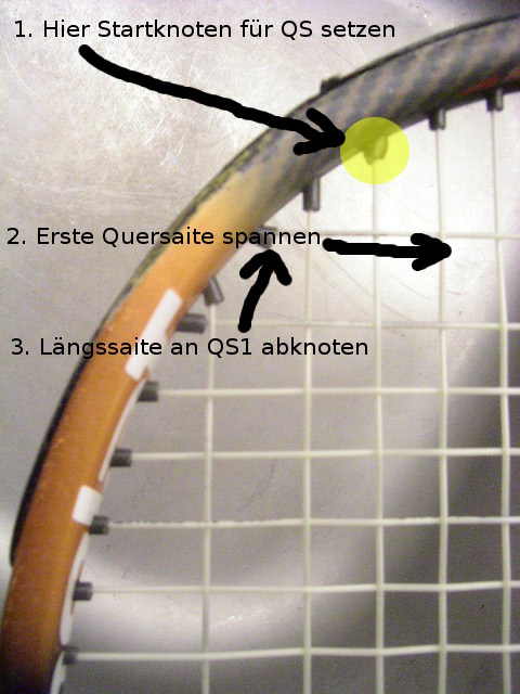 Ich habe gestern das erste Mal eine Hybrid nach der 4-Knoten Methode bespannt und zwei Fragen hierzu: