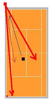 Wenn ich im Einzel einen Angriffsball einen halben Meter hinter die T-Linie und dicht an die Seitenlinie spiele, wo muß ich mich dann genau am Netz positionieren, nach dem Prinzip der Winkelhalbierenden. Wie zeichnet man den Winkel ein. Der Gegner kann eigentlich nur noch longline oder kurz cross passieren.